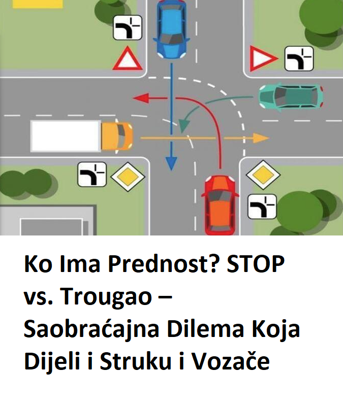 I eto ga – potpuna kontradikcija. Dok sudski vještak tvrdi da STOP uvijek znači da “gubiš prednost”, autoškole uče suprotno: prednost se određuje prema kombinaciji znakova i smjera kretanja.