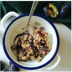 Nakon toga u smjesu sipajte kefir i sve dobro promiješajte dok ne dobijete ujednačenu teksturu. Omekšale šljive sitno nasjeckajte i dodajte u pripremljenu smjesu. Sve zajedno još jednom promiješajte i ostavite u frižideru preko noći.