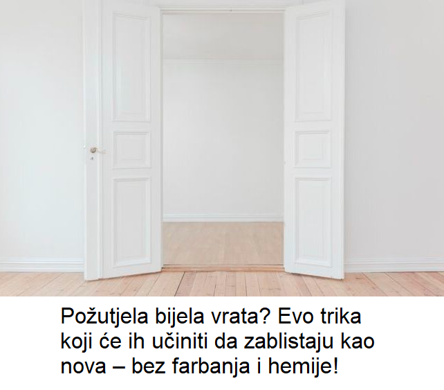 Stan vam je besprijekorno čist, podovi sjaje, namještaj miriše na svježinu, ali bijela vrata i stolarija odaju sasvim drugačiji utisak? 😩 Ako ste primijetili da su vaša nekada blistavo bijela vrata poprimila žućkastu nijansu, niste jedini. Dobra vijest je da postoji jednostavno, prirodno i efikasno rješenje koje vraća sjaj bez potrebe za skupim hemijskim sredstvima ili farbanjem.