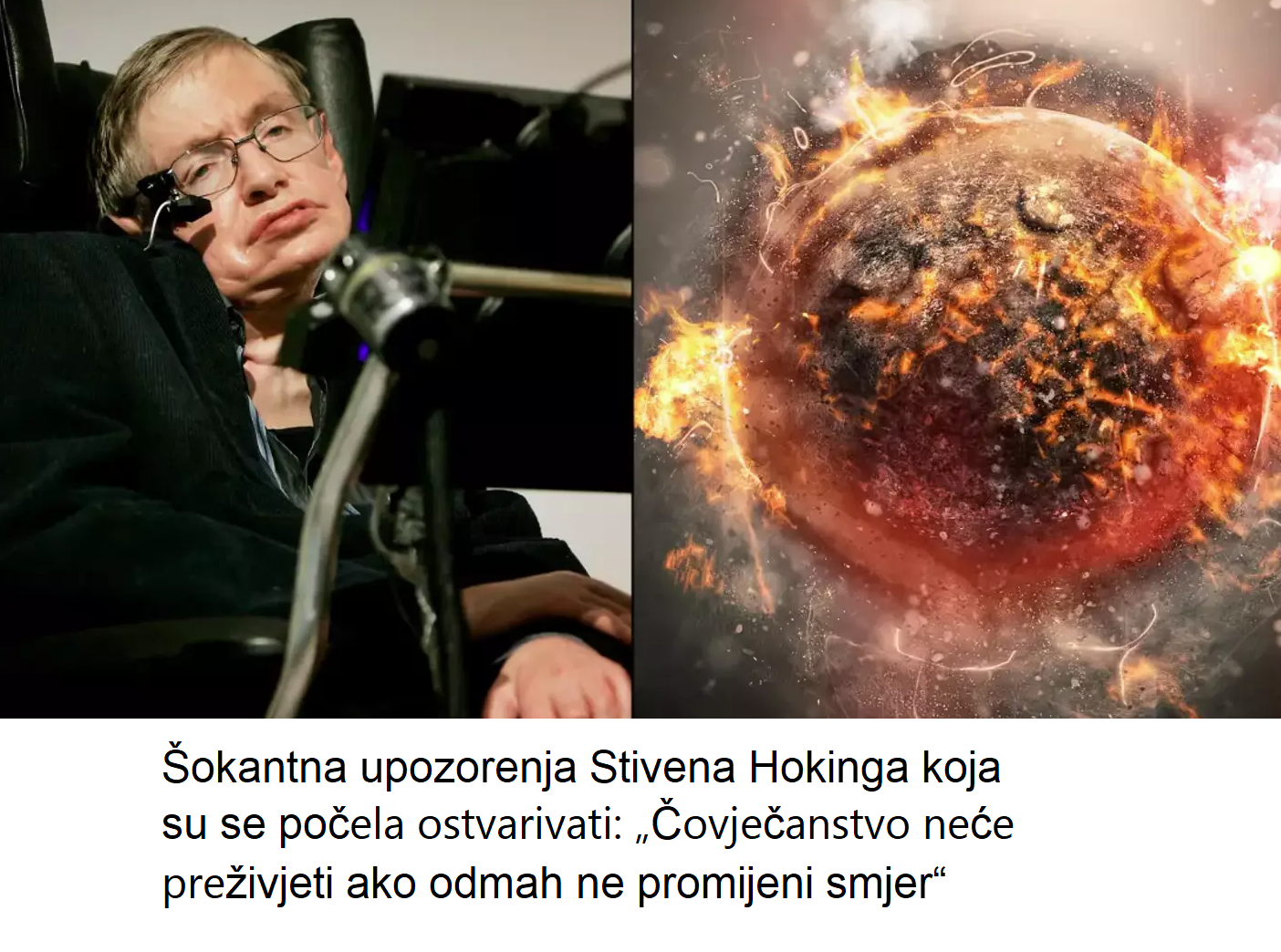 “Ako se trenutni trendovi nastave, Zemlja će postati pregrijana kugla plamena,” govorio je Hoking s brutalnom iskrenošću.
