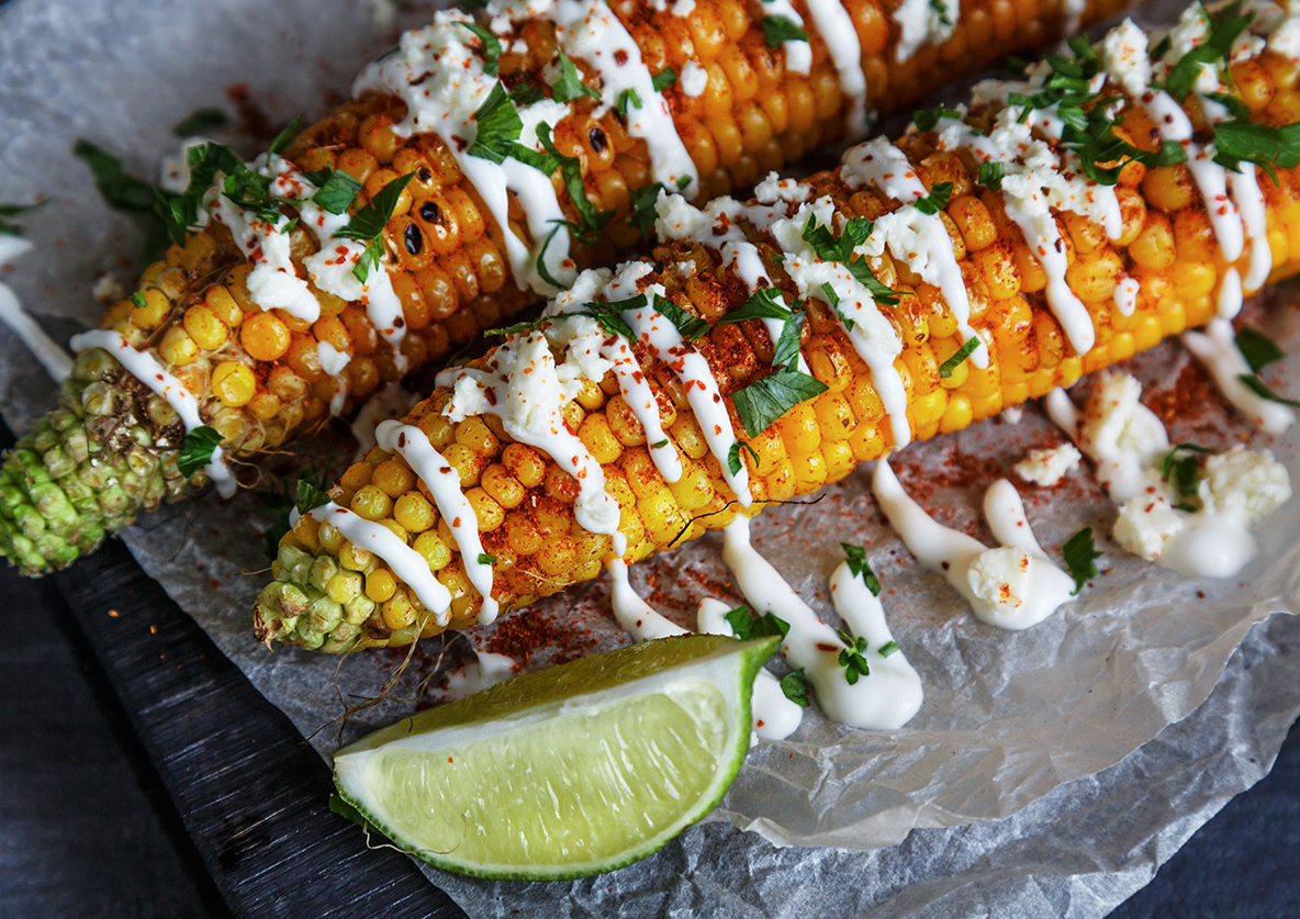 • Kukuruz na meksički način (Elote): Premaži majonezom, pospi sirom, čilijem i limetom
